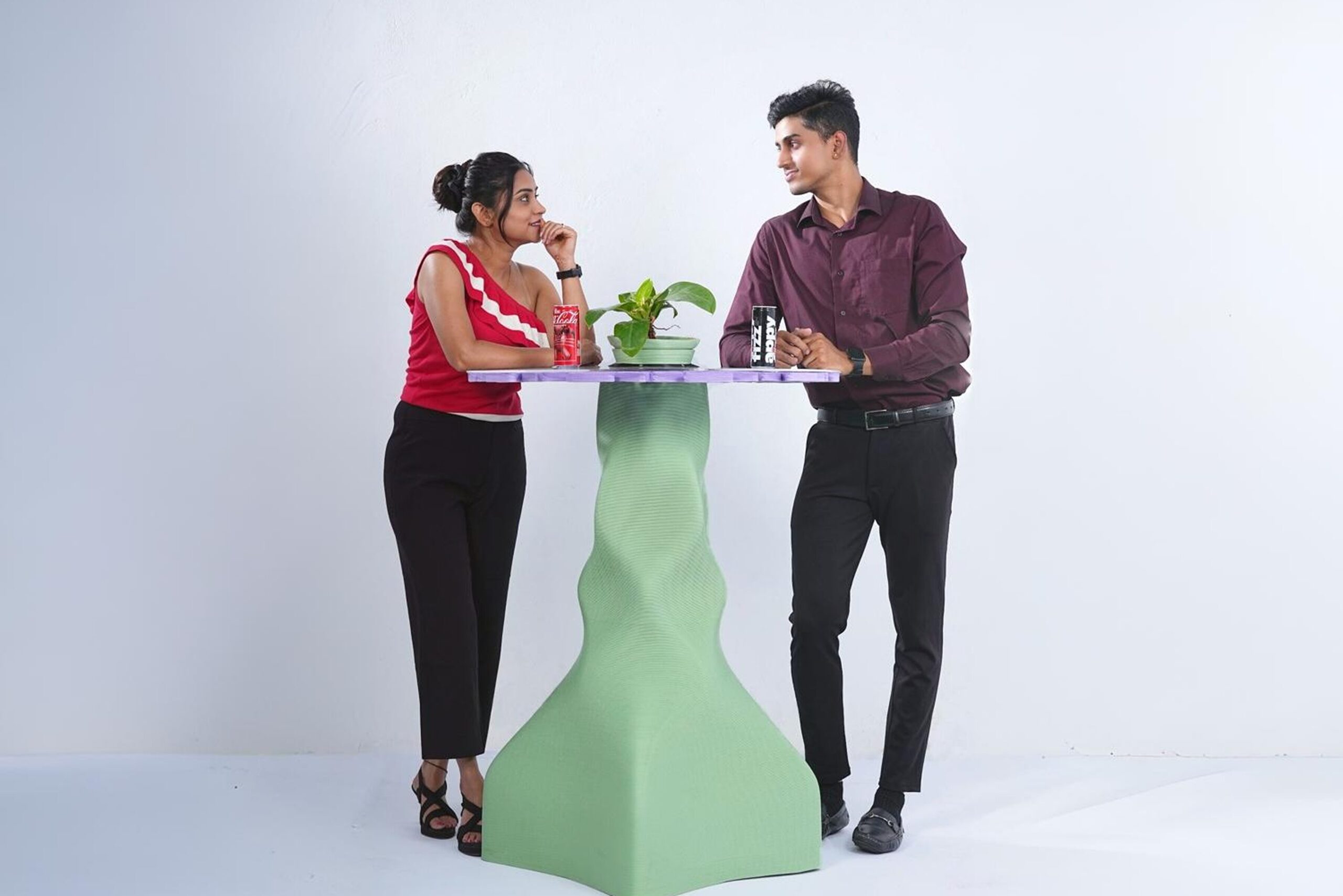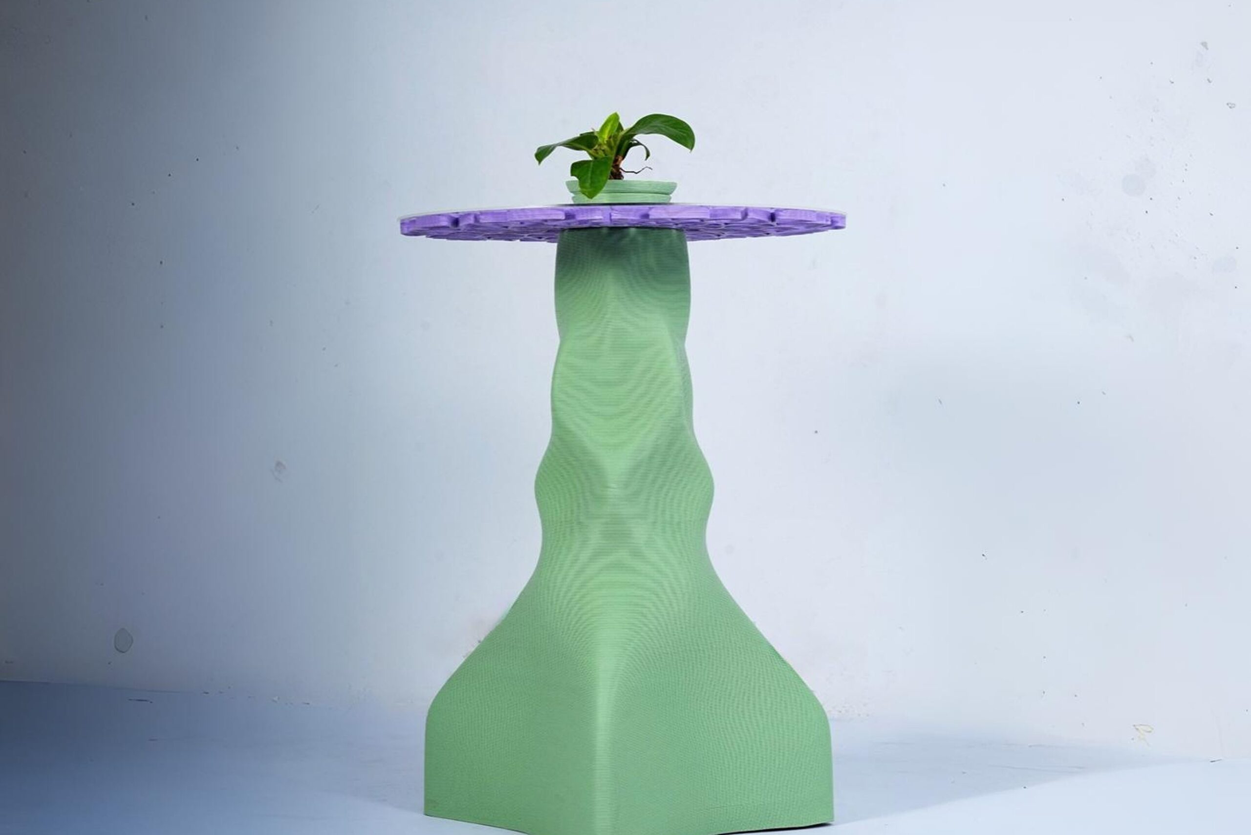 Manufactured using large-format robotic 3D printing, the desk showcases layered digital fabrication as an aesthetic feature rather than a hidden process. The design allows customization in form, scale, and colour, enabling integration into diverse architectural contexts.