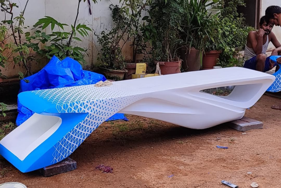 3D printing was used extensively, the elements wrapped in Steel and Fiber composite for structural stability and performance.