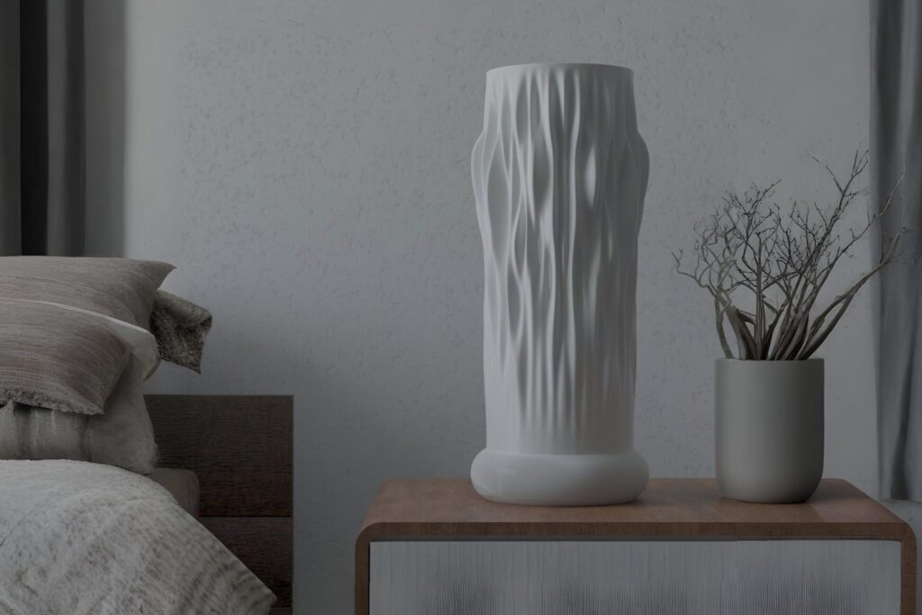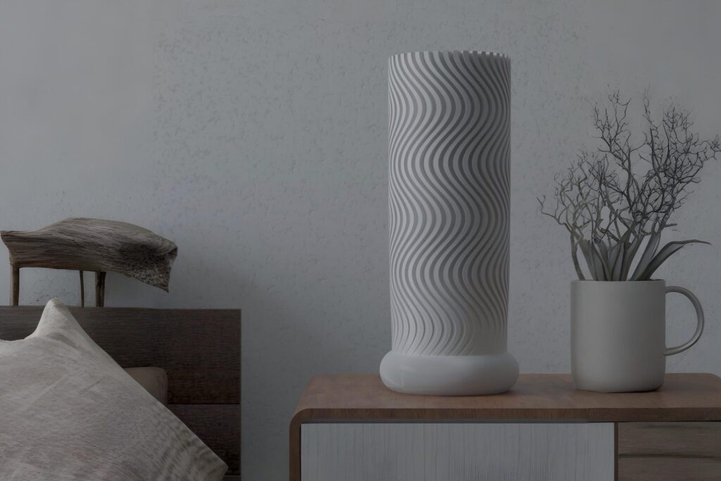 Lamps Furniture Explore Lamps Glacier Bloom Moiré Drift Minara Tessela Spiral Mirage Reed Whispers Conceptual Furnitures White Reception Desk Sided Seater / Sleeper Bench Standing Desk 2 Seater Bench Shelf System Planter Wall 3D Portrait Blobby Chair Partition Screen